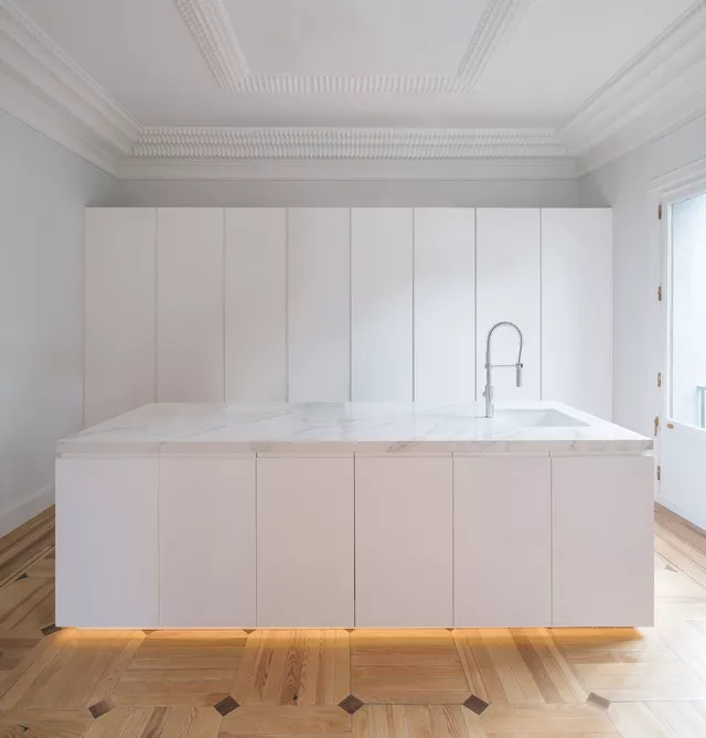 The use of direct natural light, the elimination of single-purpose passageways, the recovery of the large spatial scale of the home’s common areas by recapturing the diagonals and cross views, are the fundamental decisions around which the project is organised in an effort to achieve maximum comfort and spatial luxury, thus adding value to the property.