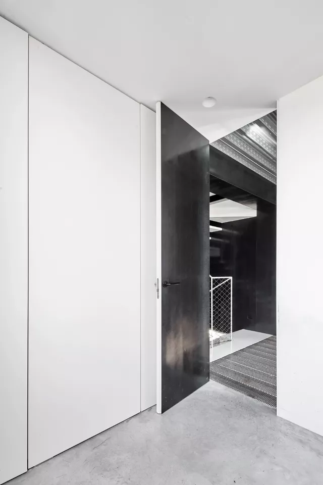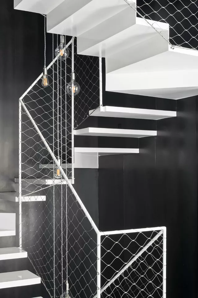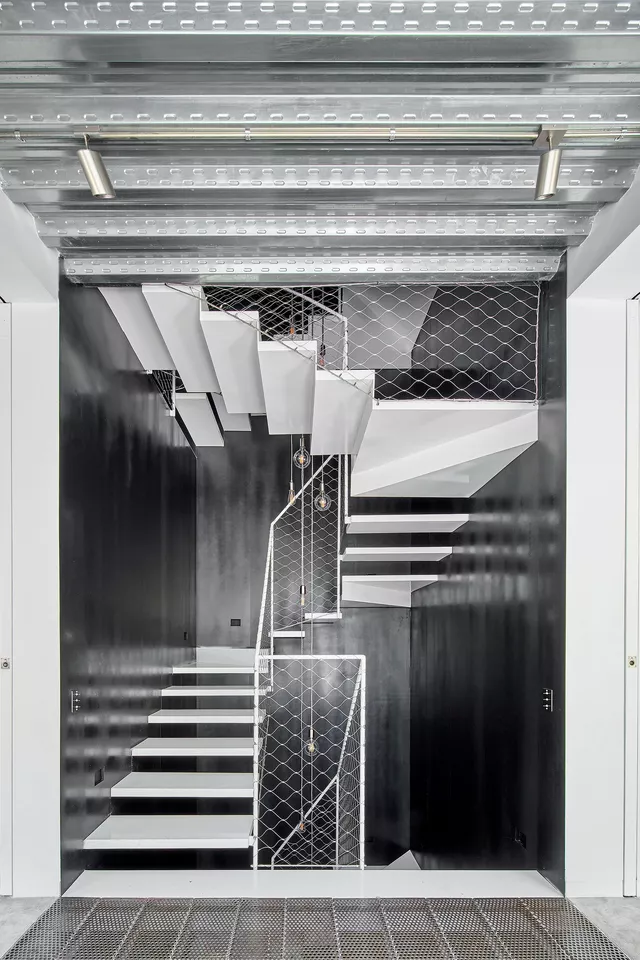 To this end, the entire interior of the house is emptied, including structure and roof, and a new and unique central concrete infrastructural core is designed to organize the program on all floors, optimizing both natural light and ventilation and reducing communication spaces. The light staircase inside and the double height spaces around it, enhance the spatial quality of the house ensuring the visual relationship between different floors.
