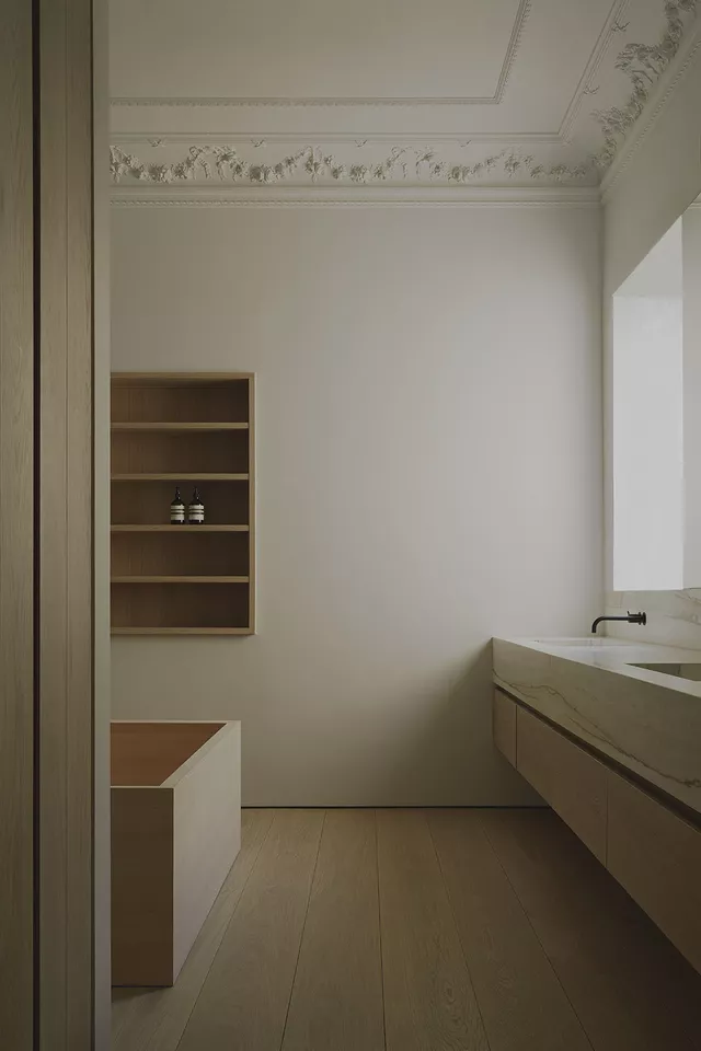 The combination provides the home with a level of sophistication where the classical and artisanal combine to complement each other in a dialogue between the contemporary needs of function and wellbeing with the preservation and enhancement of historic architectural and cultural heritage.