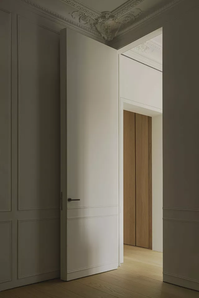 Once this historic character was reinstated, the interior was balanced with custom contemporary details using noble materials like solid wood, marble, and stainless steel.