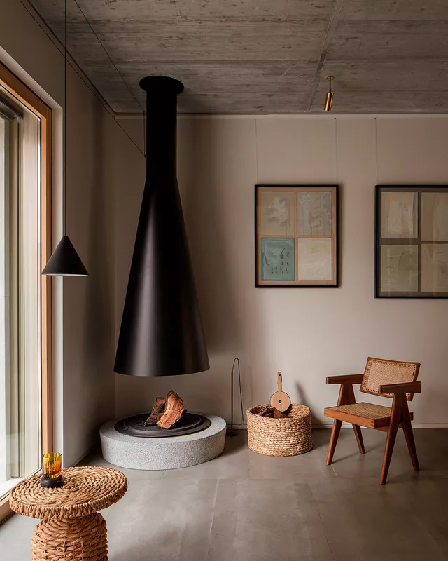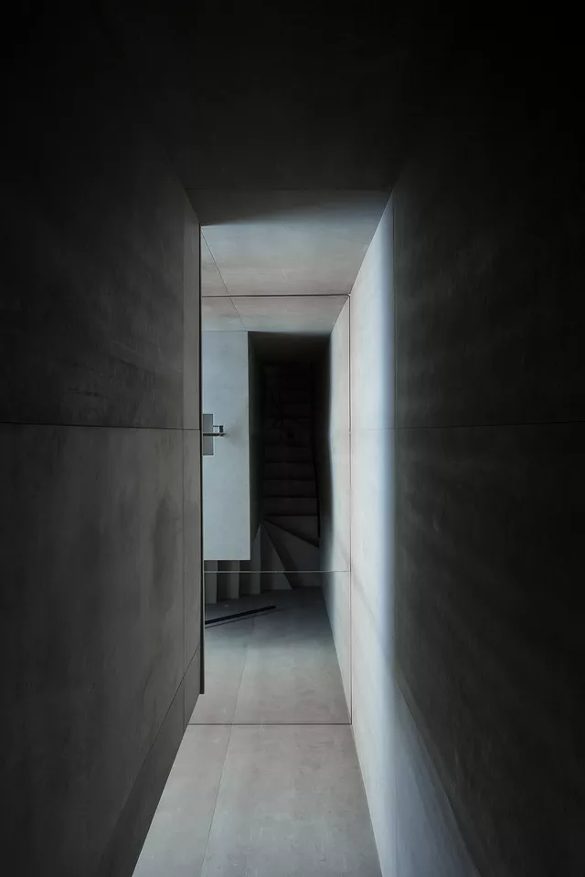 Inclusion of geothermal energy and the implementation of numerous passive strategies in the very structure of the home to make use of natural ventilation and the thermal inertia of the materials themselves contribute to moderating the temperatures in the interior space and optimising the house’s energy performance throughout the year. The interior spaces are covered with some freedom in materials with smooth finishes, with expansive wood-trimmed windows, framing views and creating a variety of domestic nooks that incorporate pieces of furniture contributing the necessary warmth to the domestic layout as a counterpoint to the bare, clean spatial nature of the design.