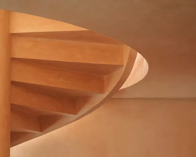 The home includes traditional architectural elements to improve its ambient comfort and energy efficiency, such as the latticework on the west façade, which provides solar protection, and the interior patio that facilitates cross ventilation, allowing fresh air to circulate through the stairwell. These elements help create a warm, human space with excellent energy performance.