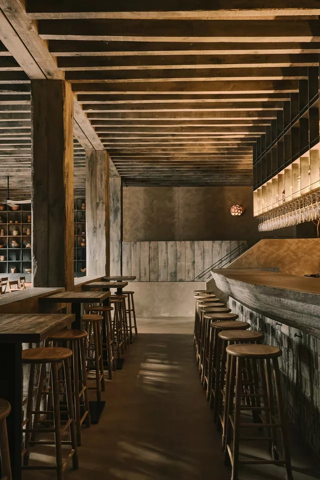 The carefully crafted theatrical lighting, the artisanal treatment of the materials, and the handmade furniture enhance diners’ sense of privacy and wellness.