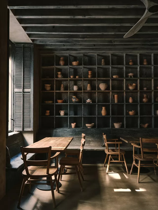 This place serves as a refuge from hectic urban life. Its visual and tactile elements combine to create an interior space where time stops and a unique culinary experience begins.