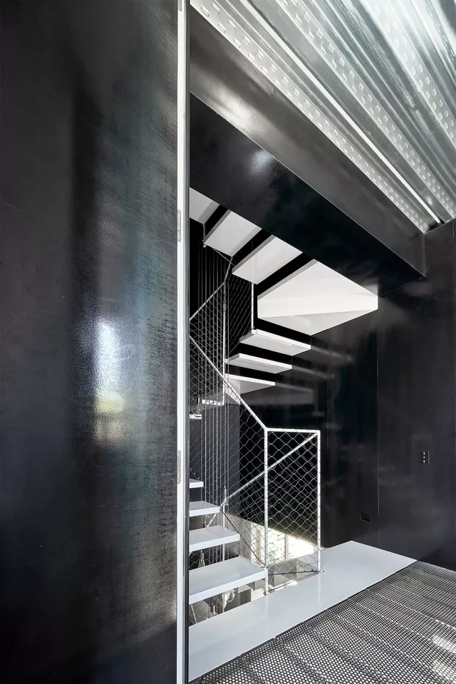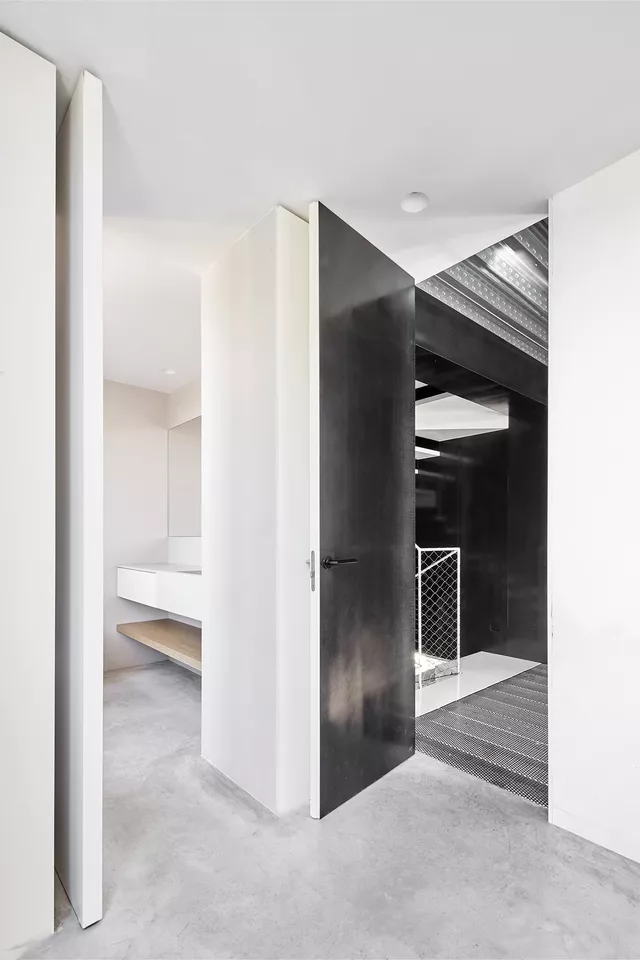 To this end, the entire interior of the house is emptied, including structure and roof, and a new and unique central concrete infrastructural core is designed to organize the program on all floors, optimizing both natural light and ventilation and reducing communication spaces. The light staircase inside and the double height spaces around it, enhance the spatial quality of the house ensuring the visual relationship between different floors.