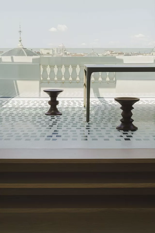The project involved adapting an attic space in a historic building on Madrid’s calle Serrano. The building, which encloses a large courtyard garden of historic interest, is located within the Madrid city extension designed by Carlos M. de Castro in 1860.