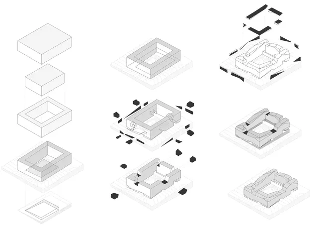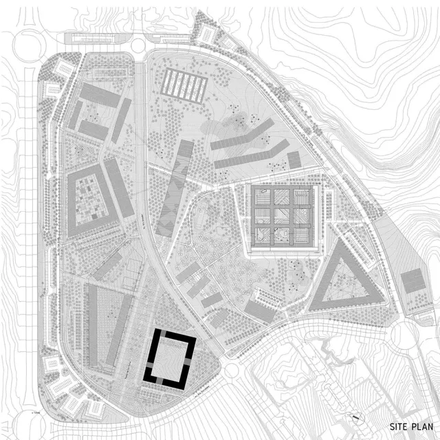 The original project idea comes from the large clods which remain unworked in the fields of La Mancha and go by the local name of Gasón. The project is conceived as an intentional, rounded and almost stone-like geological accident. The site has a large drop of 8.7 m across its diagonal and the planned building sits naturally on the existing ground, respecting its topography. The central space is sculpted with gentle ramps and terraces. It interposes subtly in the landscape, conserving the existing flora and the fauna.