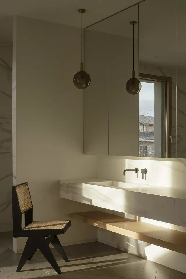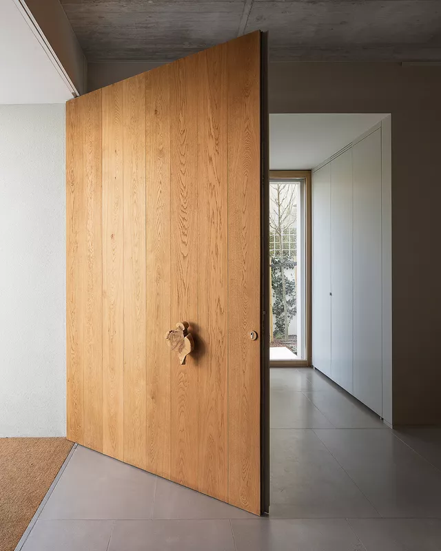 Inclusion of geothermal energy and the implementation of numerous passive strategies in the very structure of the home to make use of natural ventilation and the thermal inertia of the materials themselves contribute to moderating the temperatures in the interior space and optimising the house’s energy performance throughout the year. The interior spaces are covered with some freedom in materials with smooth finishes, with expansive wood-trimmed windows, framing views and creating a variety of domestic nooks that incorporate pieces of furniture contributing the necessary warmth to the domestic layout as a counterpoint to the bare, clean spatial nature of the design.