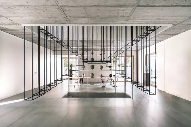 Spatially, a lightweight suspended structure colonises the central space in the home like a tree, characterising the large three-storey space that resolves the house’s vertical communication, acting as a true backbone to the setting, binding spatial, functional and environmental aspects, optimising the interior space in the home. The freshness of the irrigation and moisture from the garden are exploited by introducing them into the diaphanous interior space of the home through the large windows, using the Venturi effect generated by the three-storey central space ventilated at the top by two skylights, that allows the wind to flow through the designed water hanging lamps to dissipate the heat and cool the house naturally in the hot months. The space and the selected materials filter the natural energy present in the site, stores it and redistributes it to provide a thermal indoor ambient and a biological outdoor environment.